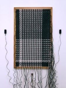 Loops of the loom est un projet d’œuvres multiples tissées à partir de fils électriques, ces câbles sont capables de transmettre des signaux audio, si bien que ces tissages sont aussi des pièces sonores. Cécile Babiole associe dans ses créations art visuel et art sonore à travers des installations et des performances qui interrogent les technologies.